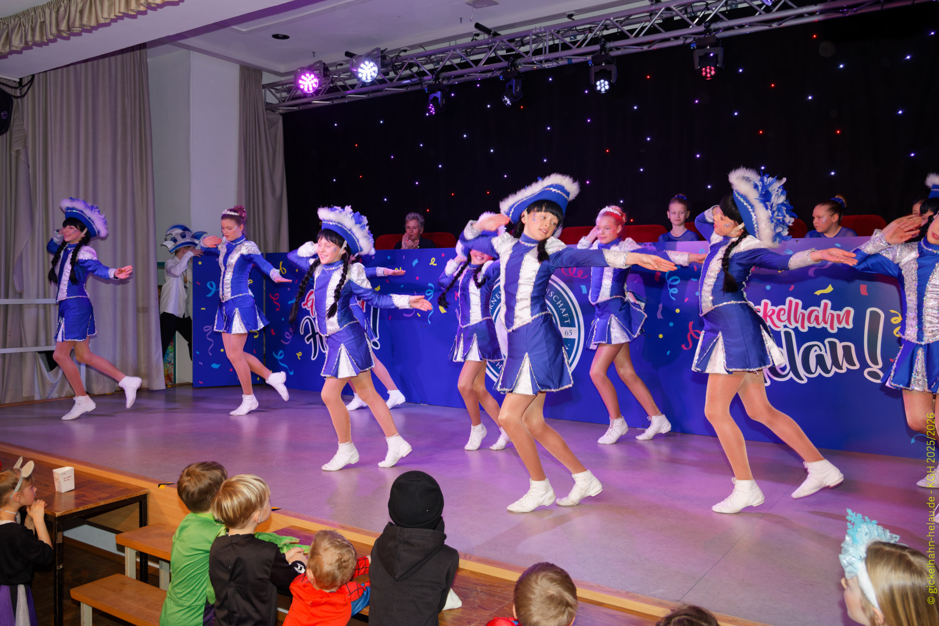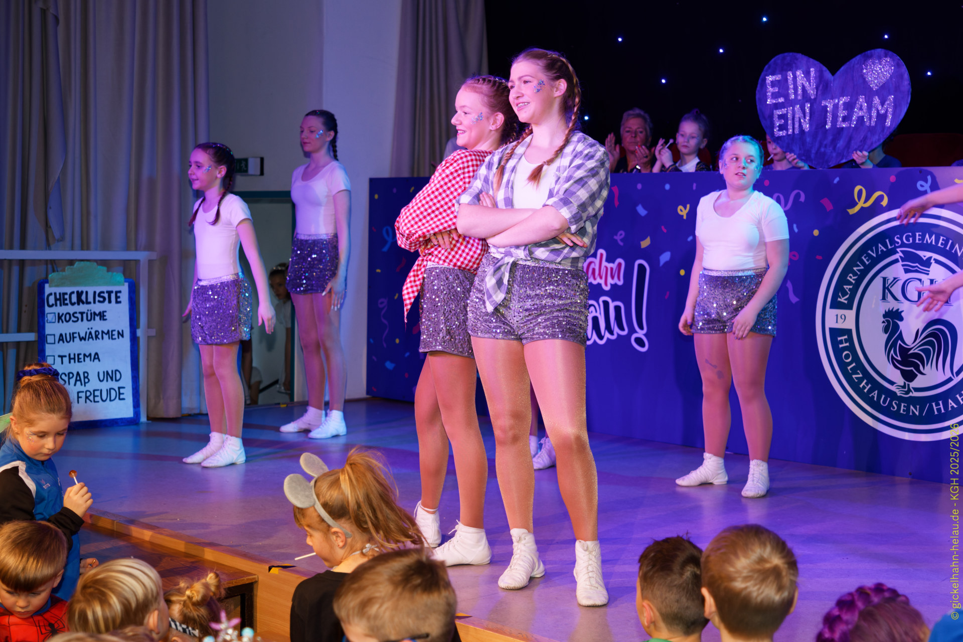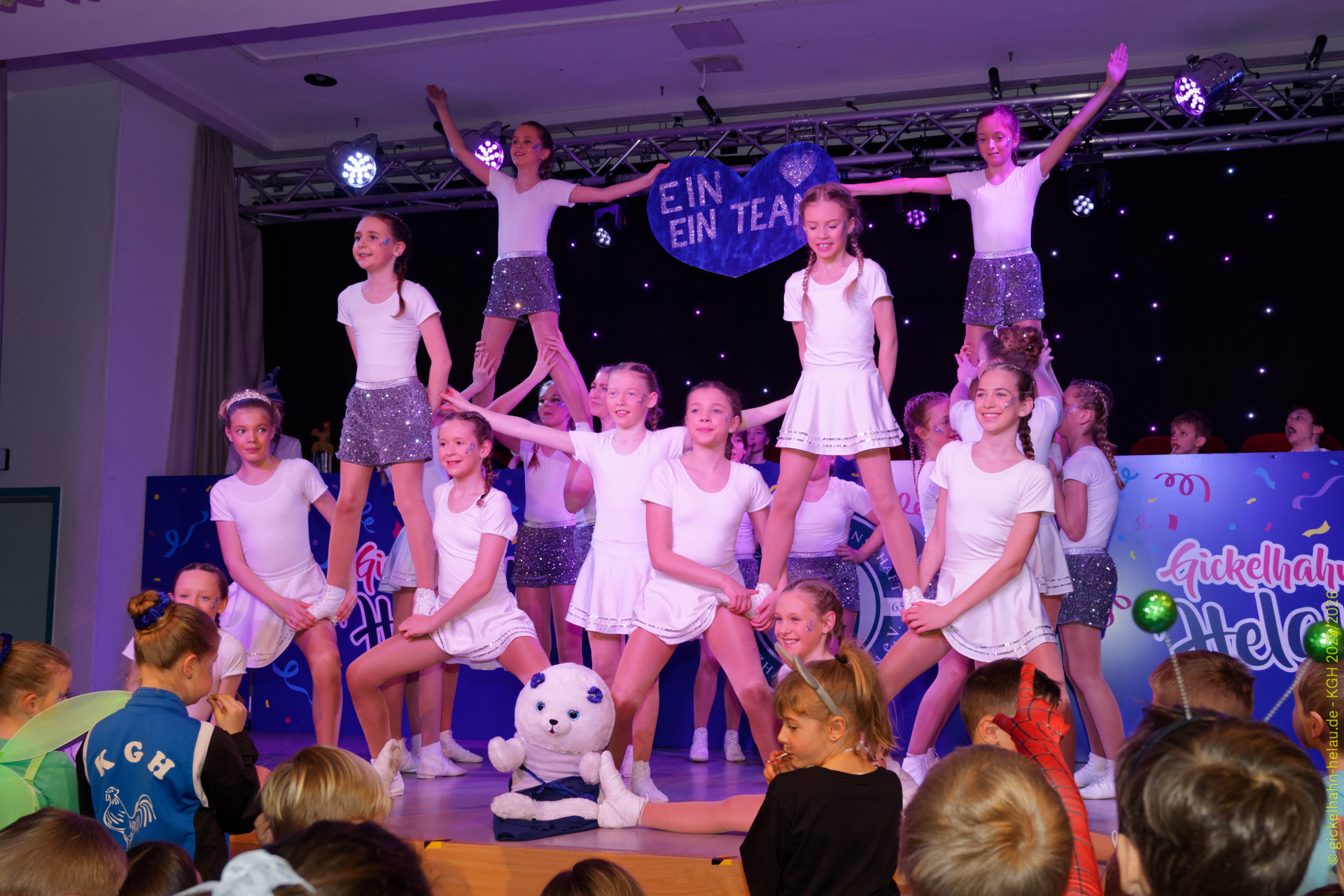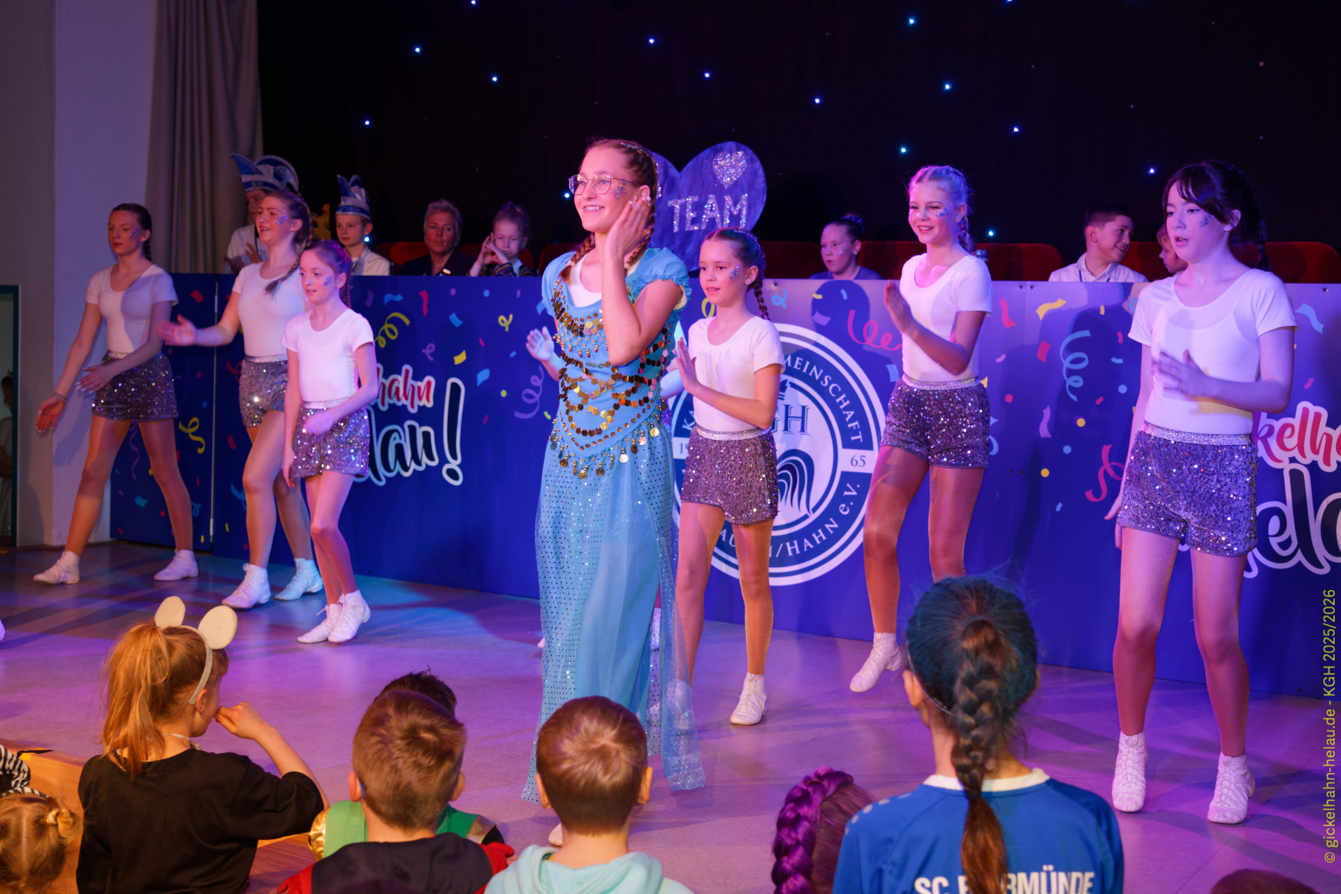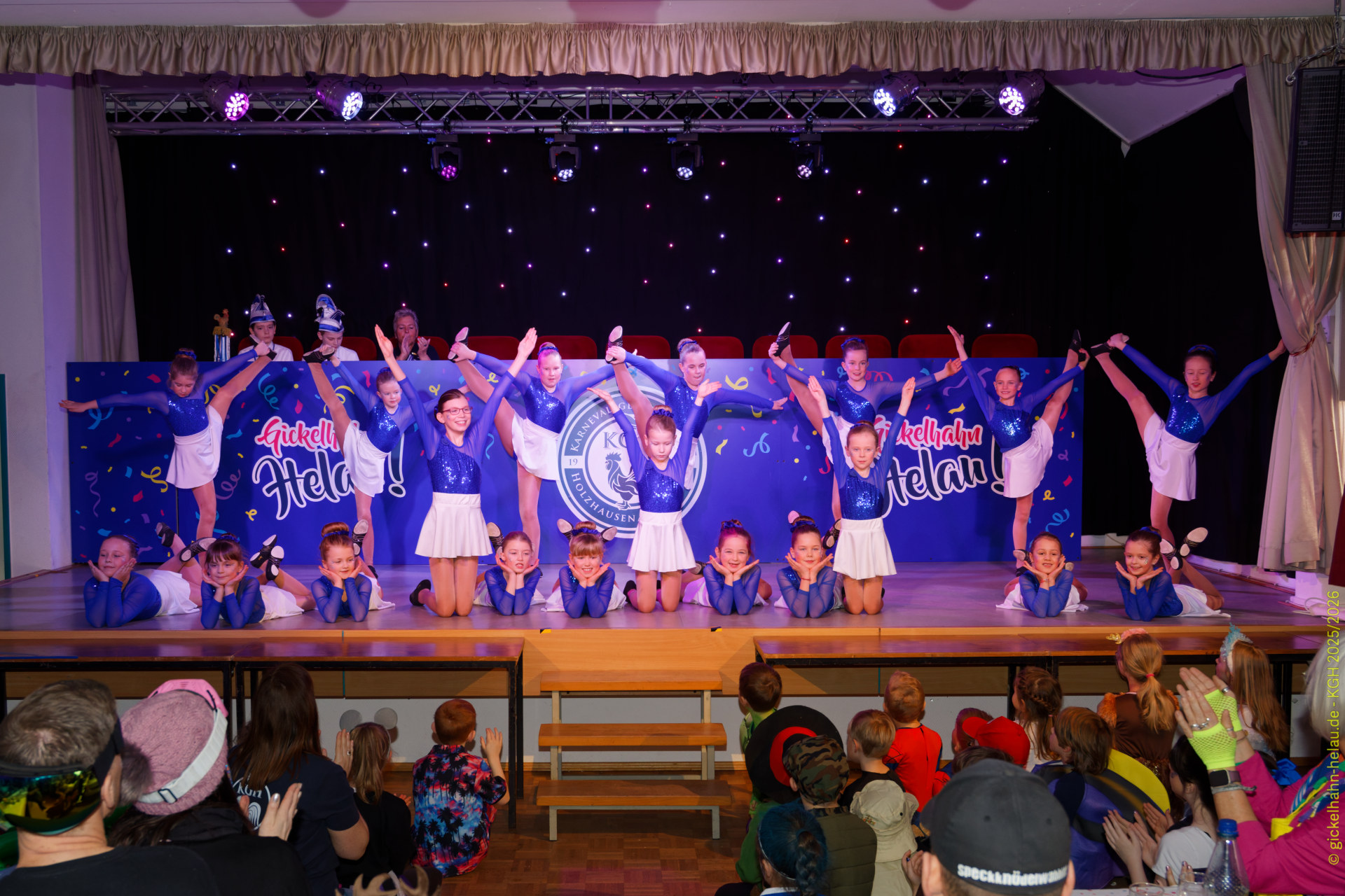 Doch es geht noch kleiner: die Holzhäuser Küken mit ihrem Showtanz „Küken im All – KGH feiert galaktisch“. Mit dem Start der Rakete ging es auf die Bühne und dort zeigten die Küken, was im All alles geht. Trainiert wurde die kleinen Astronauten von Barbara und Stella Pawletta sowie Dajana Dulemba-Petrich.
