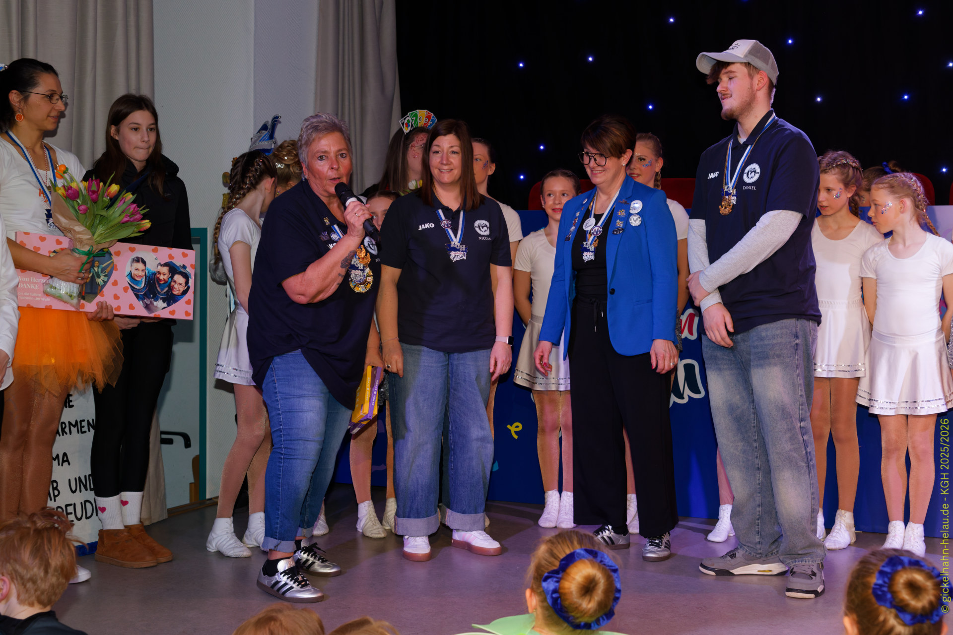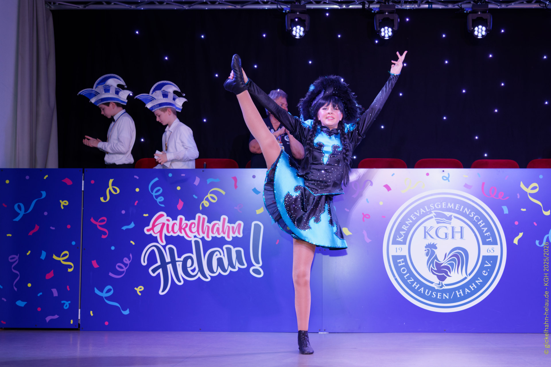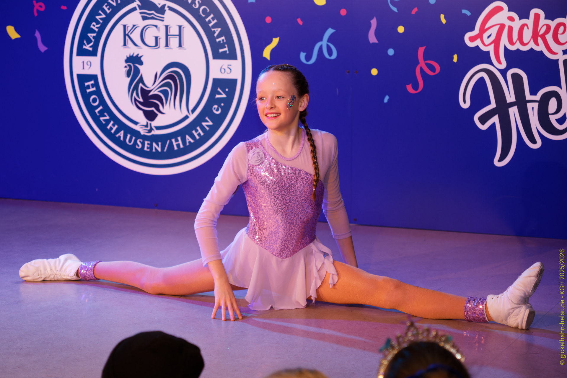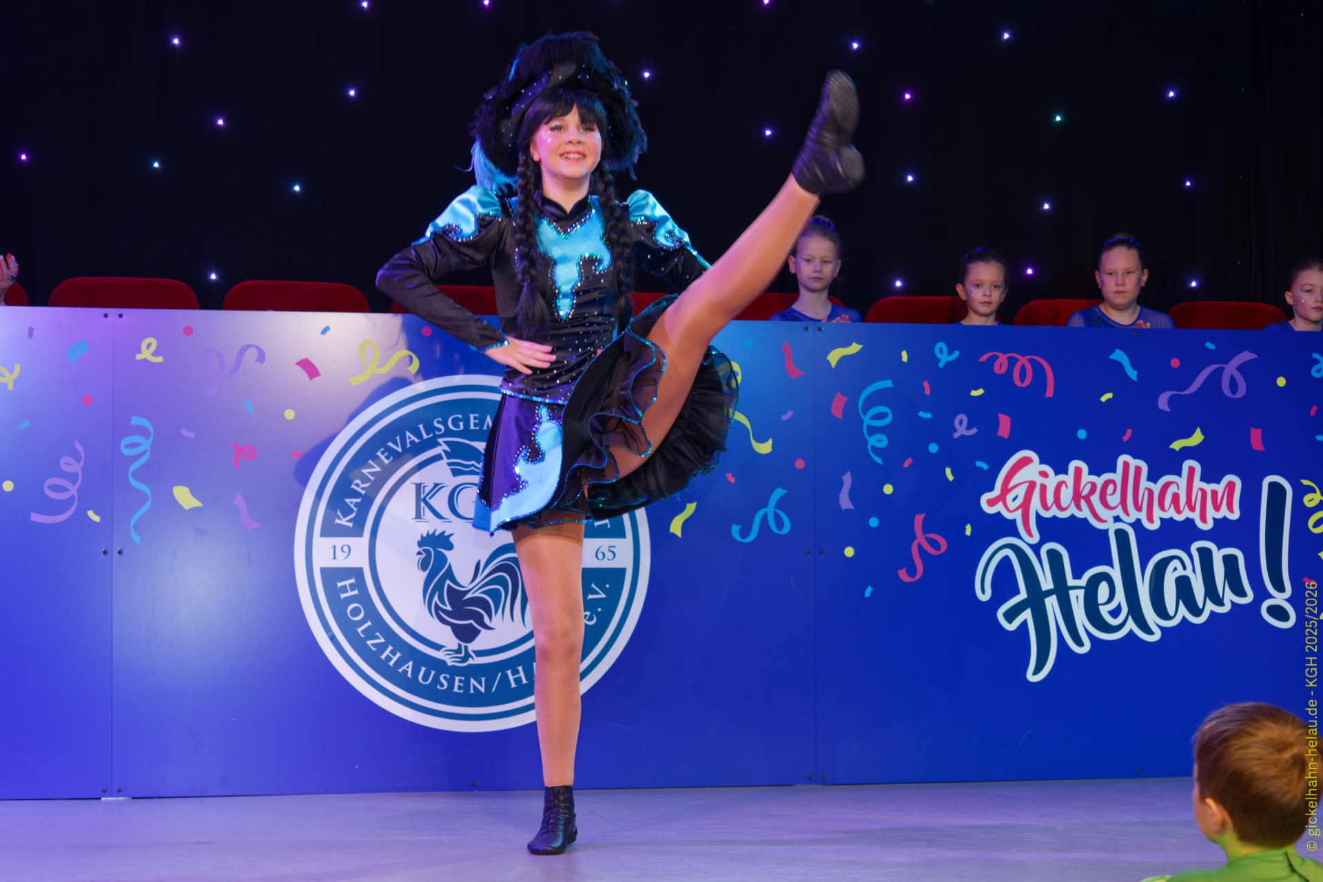 Doch es geht noch kleiner: die Holzhäuser Küken mit ihrem Showtanz „Küken im All – KGH feiert galaktisch“. Mit dem Start der Rakete ging es auf die Bühne und dort zeigten die Küken, was im All alles geht. Trainiert wurde die kleinen Astronauten von Barbara und Stella Pawletta sowie Dajana Dulemba-Petrich.