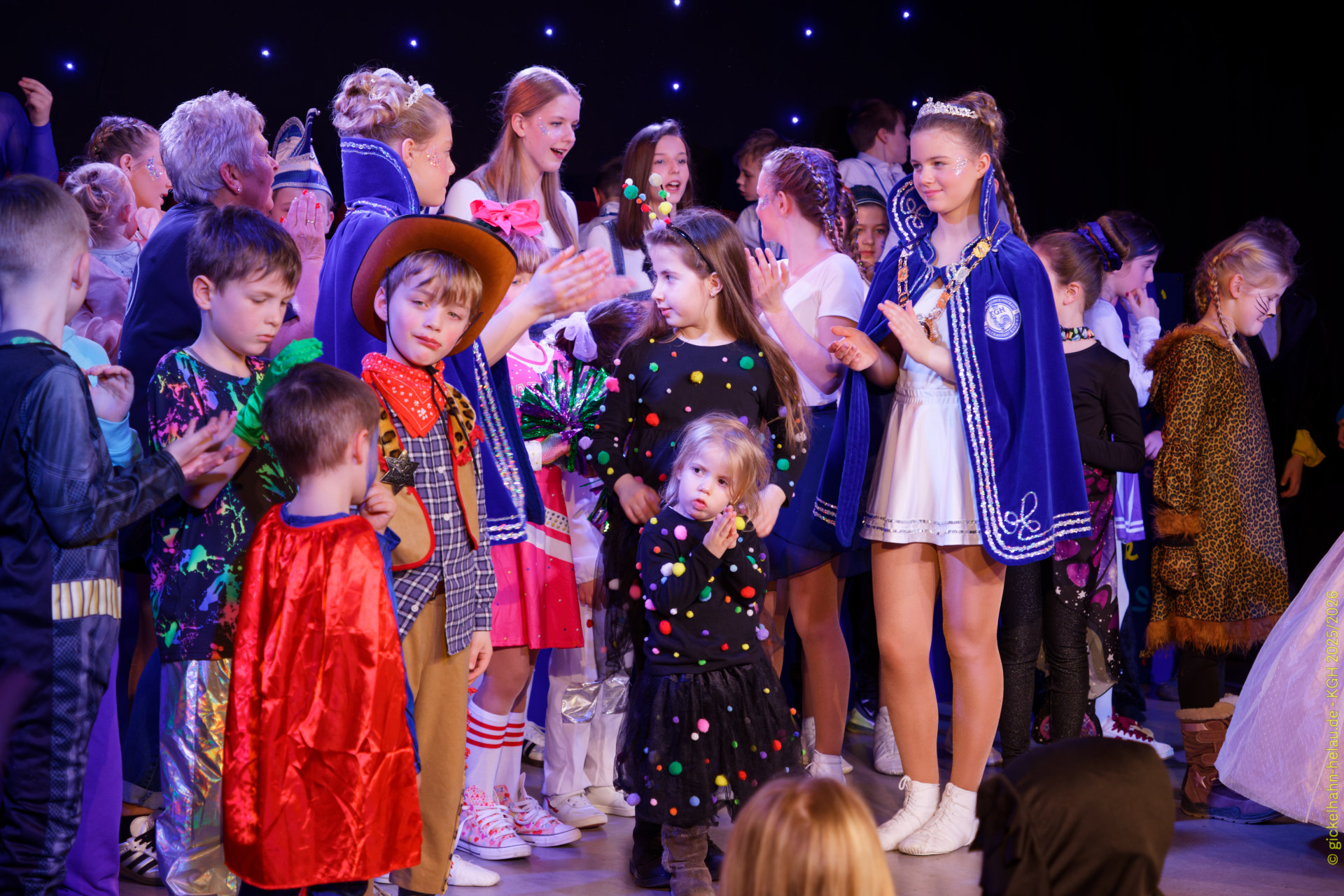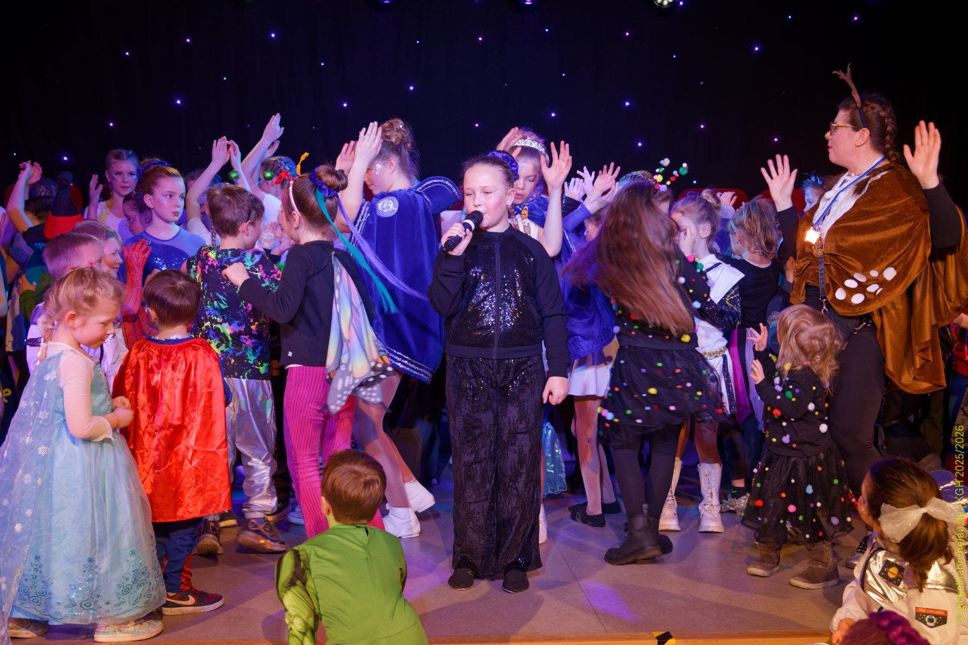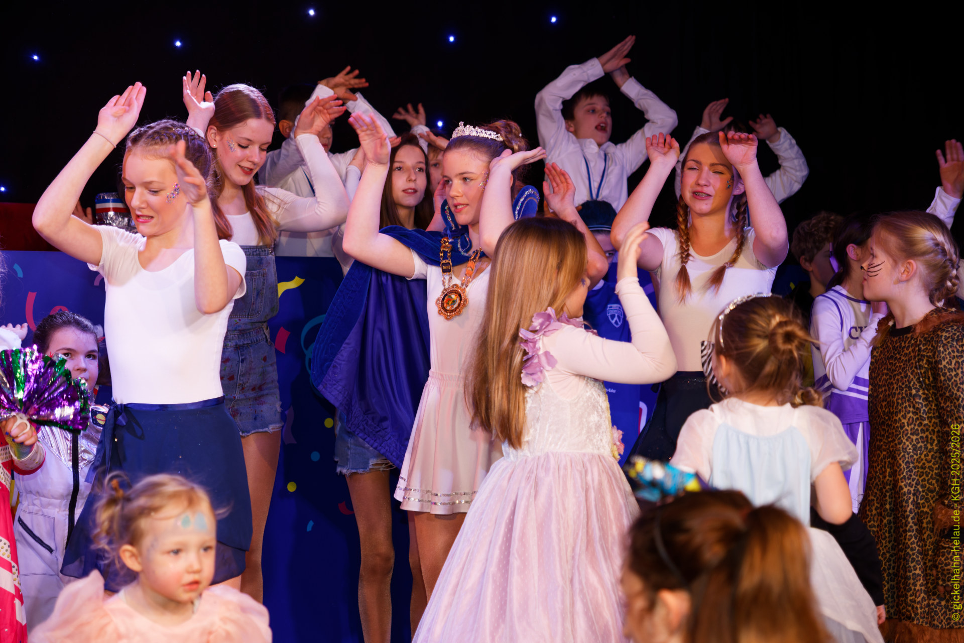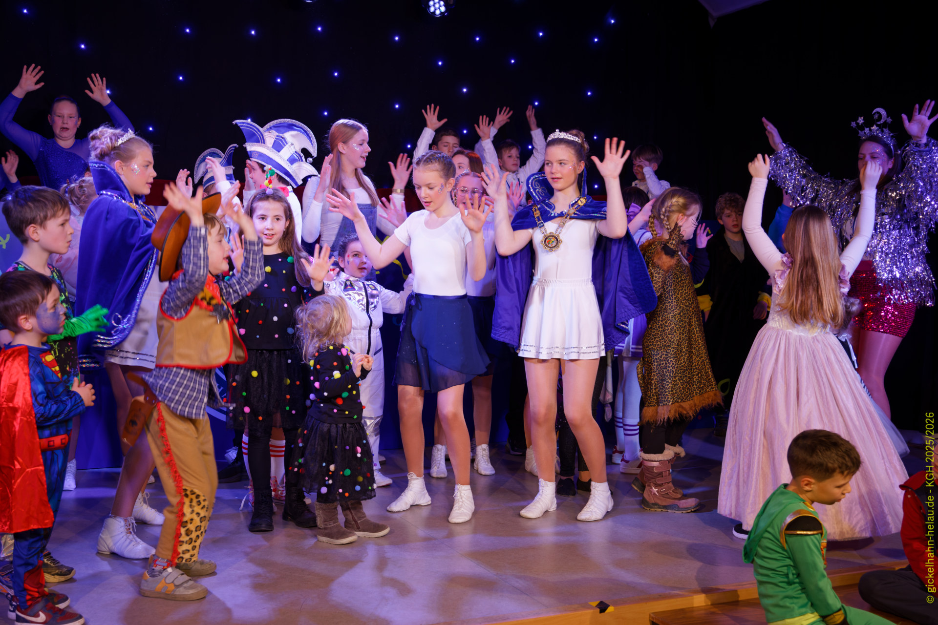 Zum großen Finale kamen alle Aktiven noch einmal auf die Bühne und feierten noch ein bisschen Kinder- und Jugendkarneval mit dem KGH.