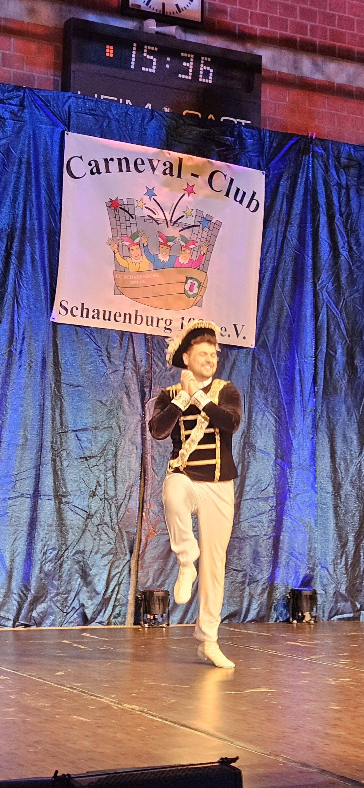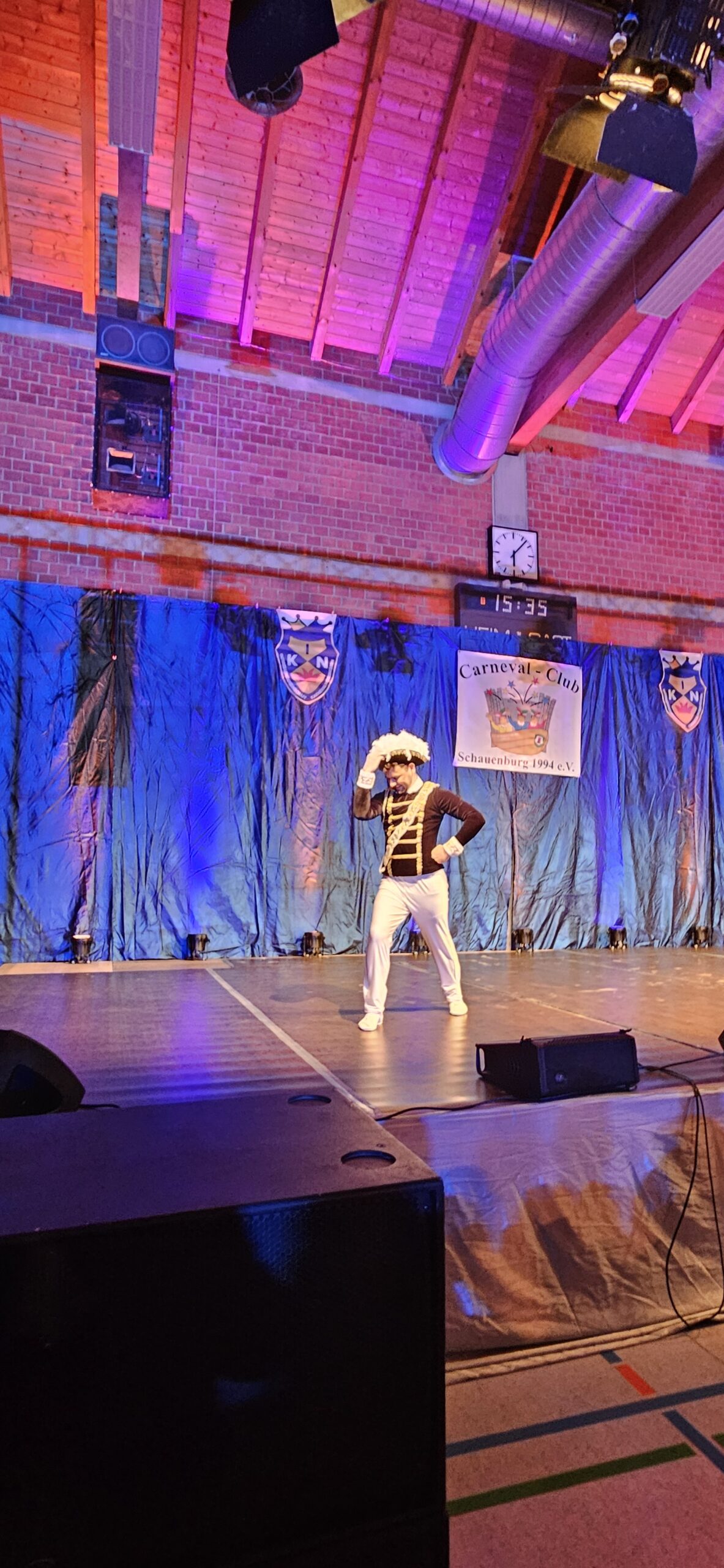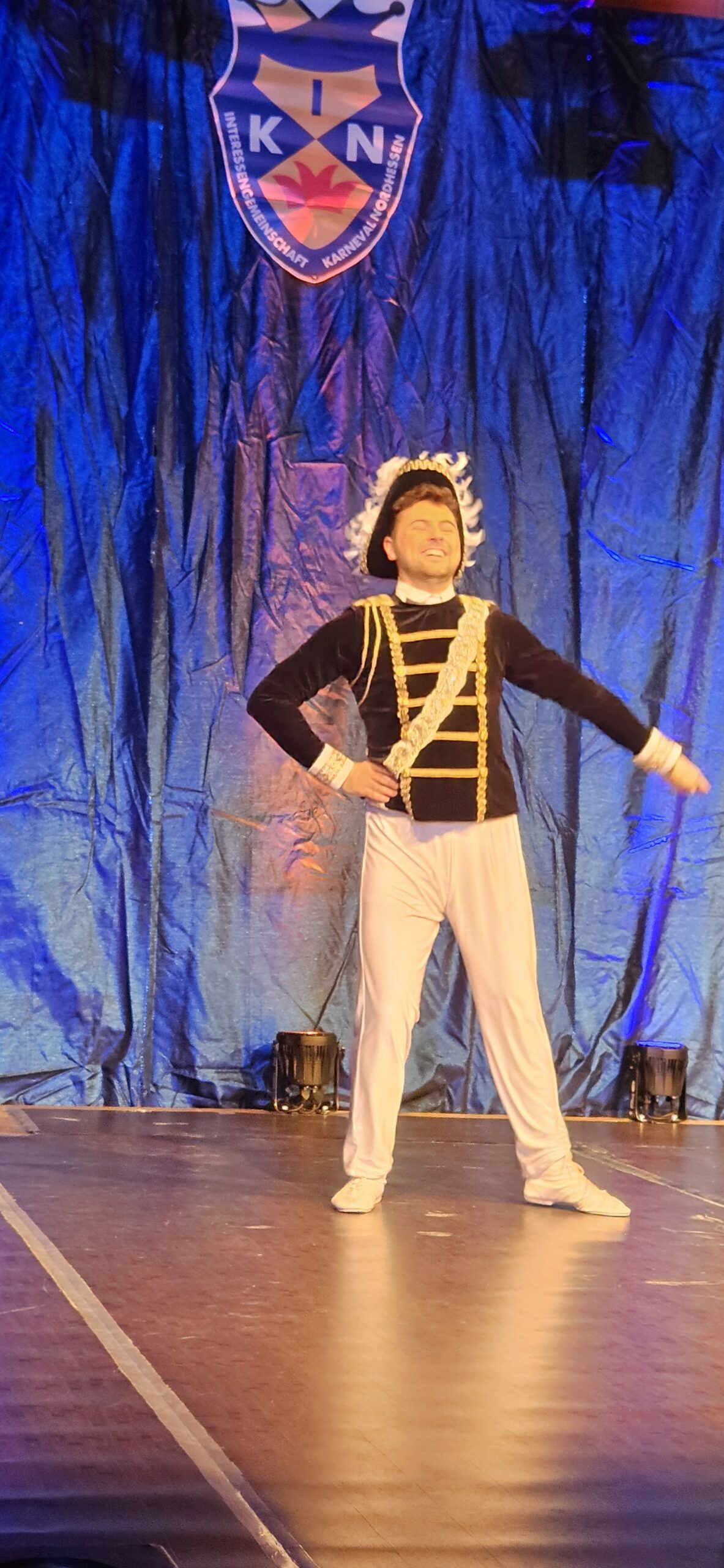 Dann hieß es umziehen und umschminken für Felix, denn der Auftritt der Prinzengarde stand bevor.