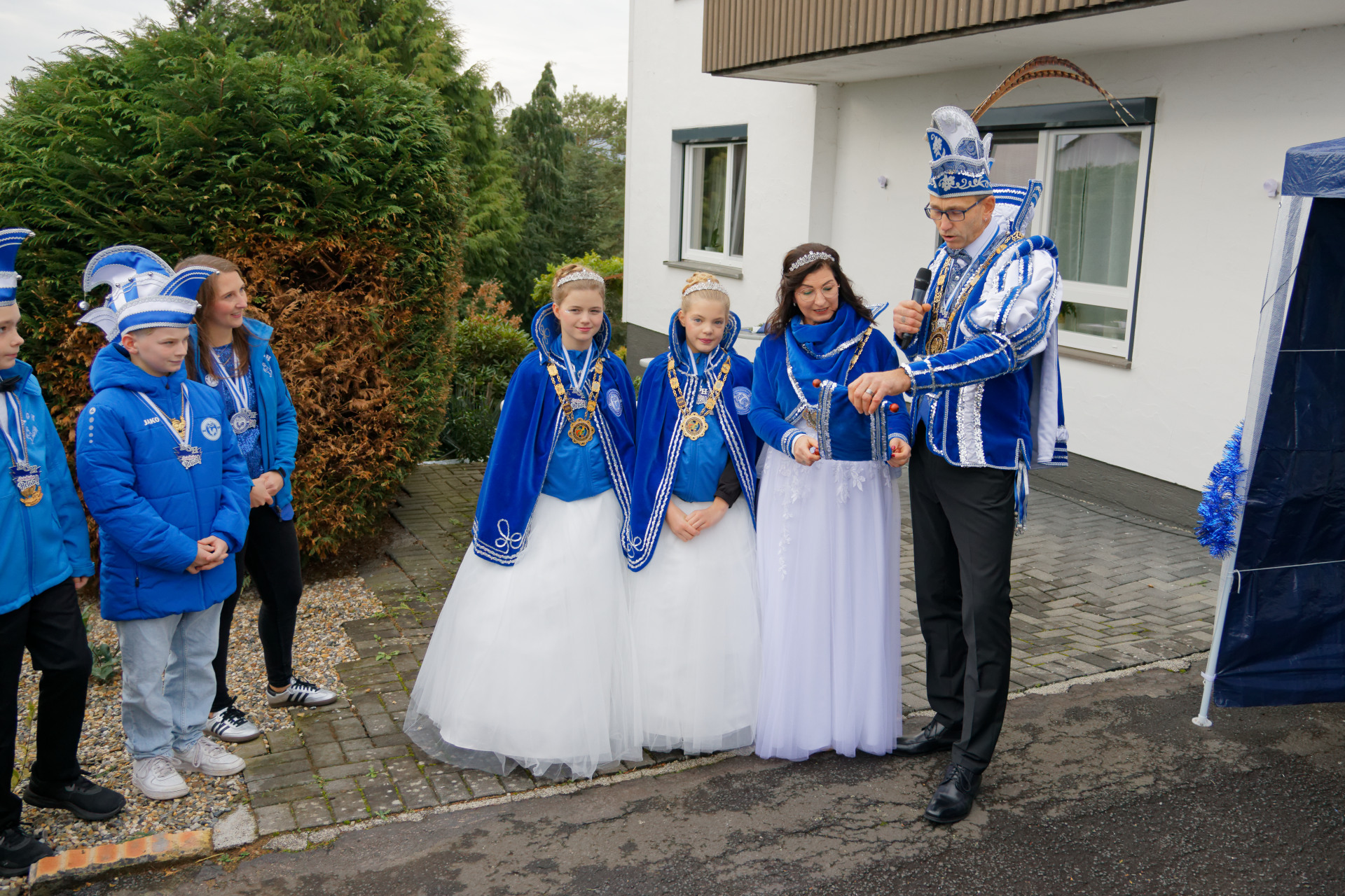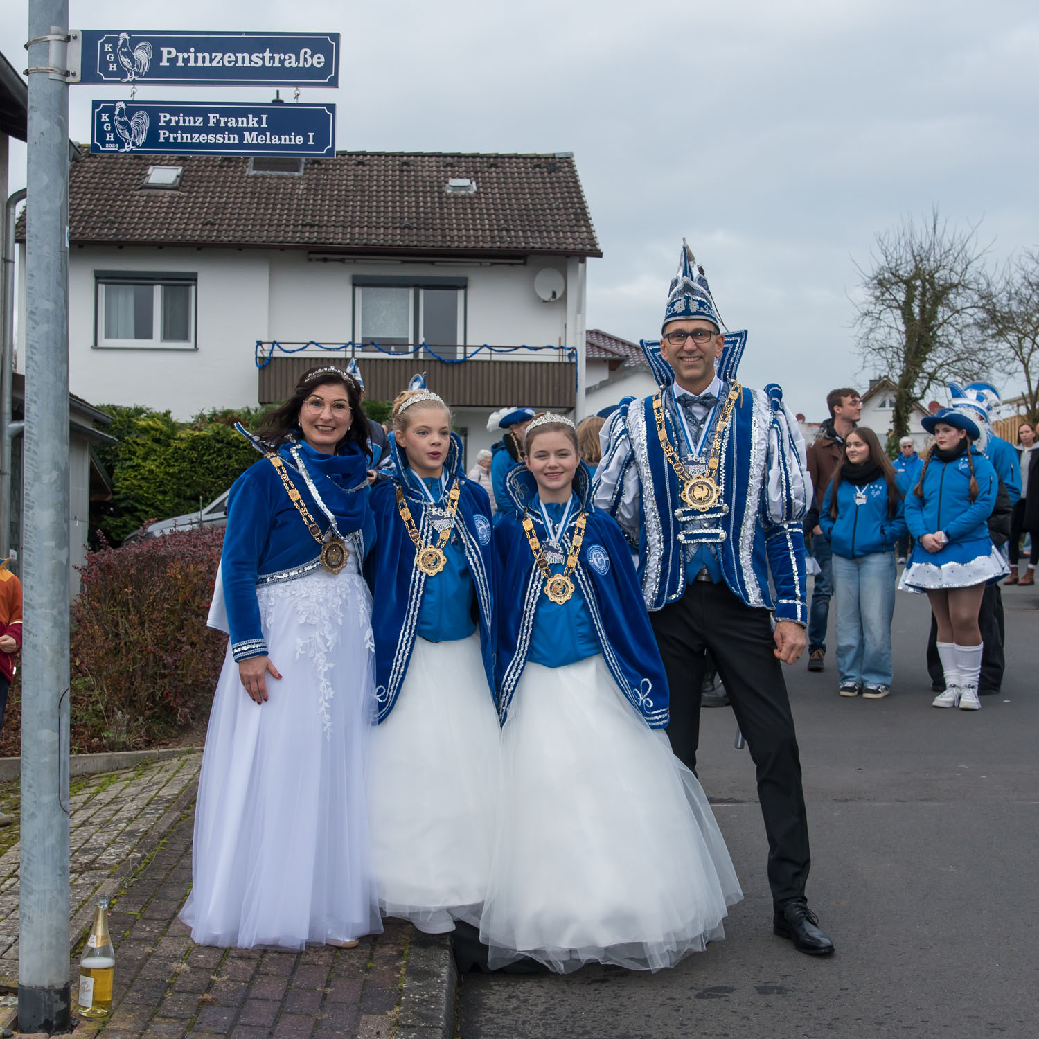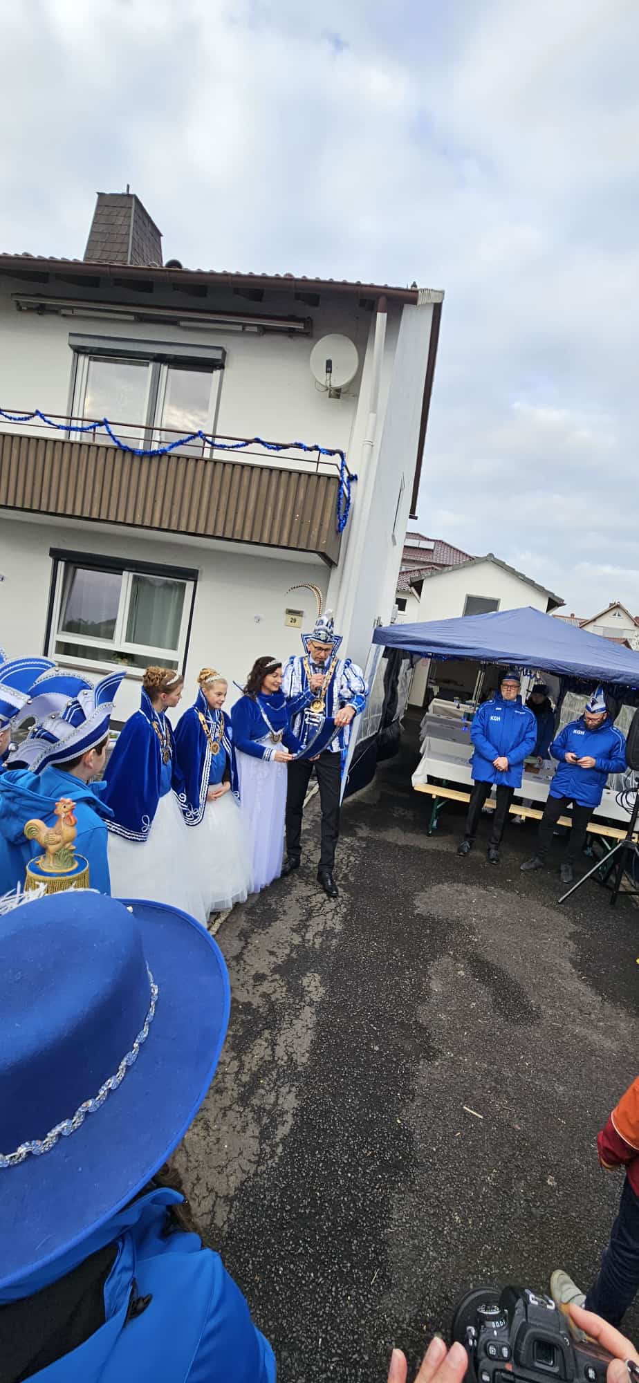 Auf machten sich die Elferräte, Kinderprinzessinnenpaar die Niedlichkeiten Holly I. aus dem Hause Ranft und Mathilda I. aus dem Hause Amely, Prinzengarde und ganz viele Mitglieder und Besucher am 15.11.2025 zur Prinzenstraßeneinweihung nach Grifte.Bei unserem Prinzenpaar seiner Herrlichkeit Prinz Frank I. – KGH-Vorstands- und Senatorenknödel, Feuerwehrheld für Groß und Klein und seiner Lieblichkeit Prinzessin Melanie I. – KGH-Perle und Kaiser-Treue mit Herz und Hand vom Grifter Hang und Forsters angekommen, wurden wir auf dem Balkon des Hauses fündig und baten das Prinzenpaar zu uns herunter.