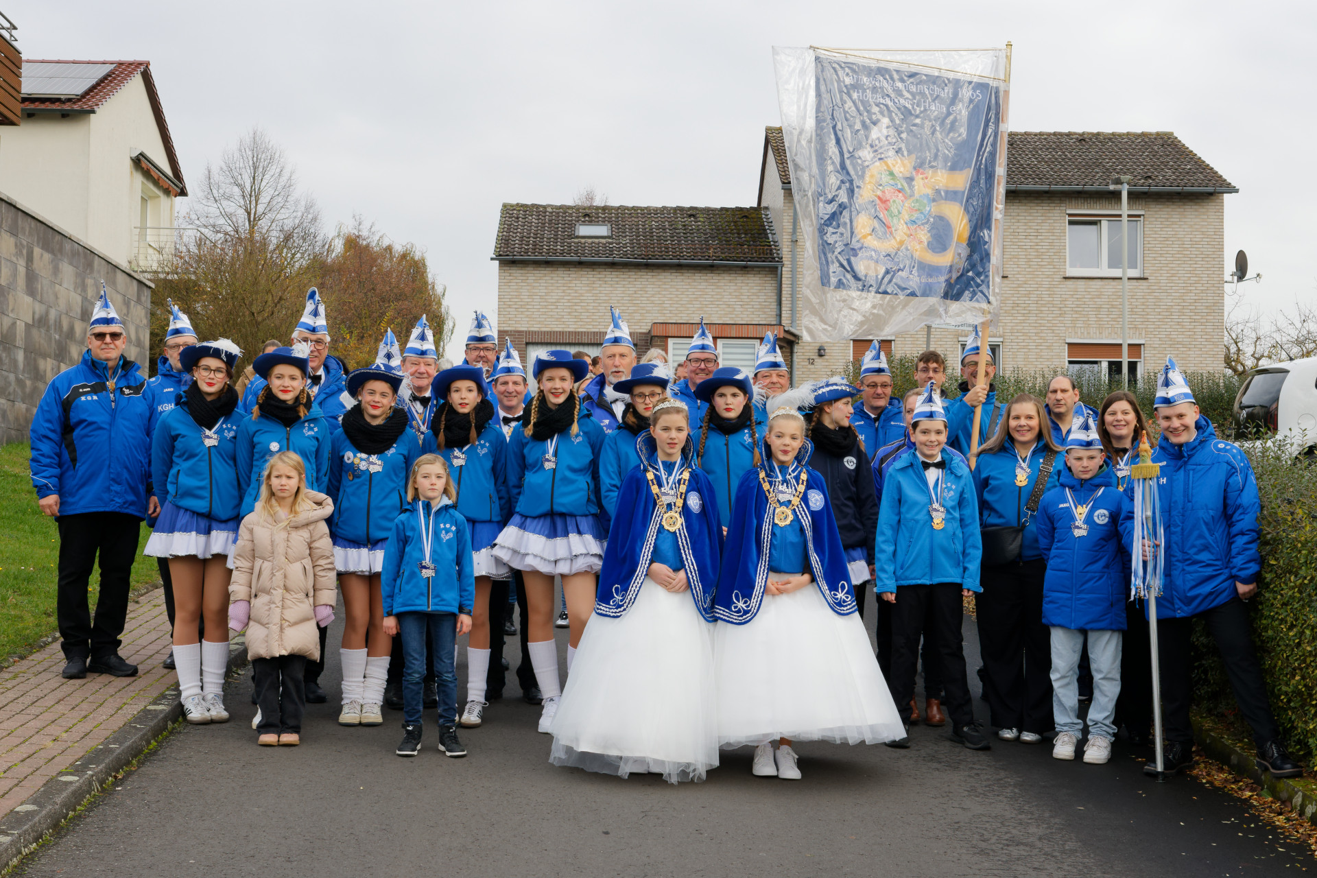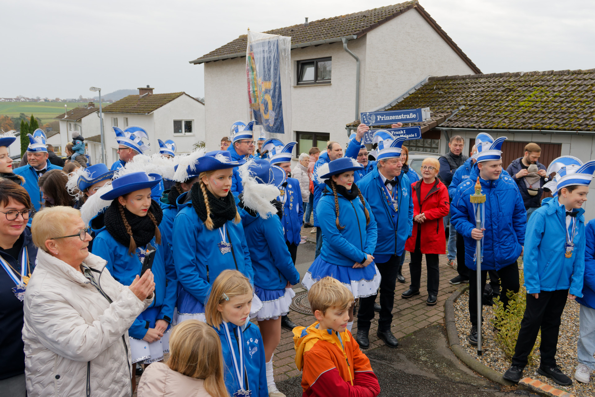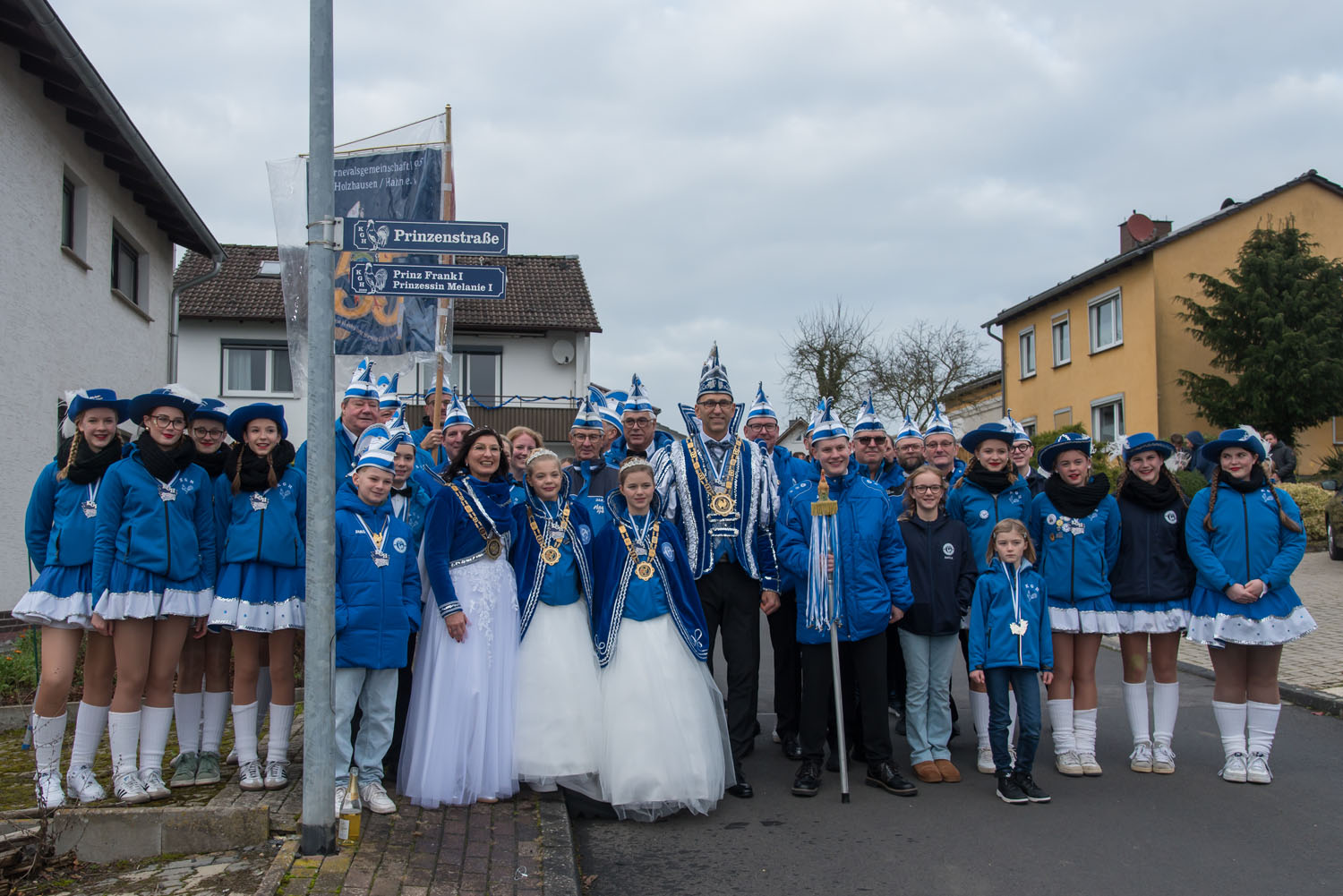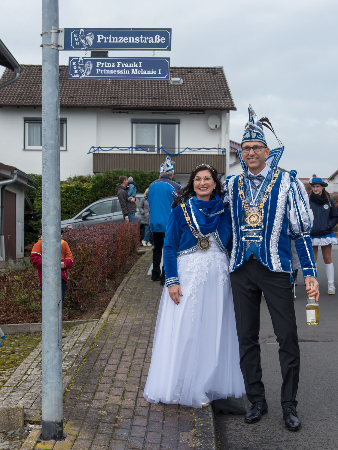 Auf machten sich die Elferräte, Kinderprinzessinnenpaar die Niedlichkeiten Holly I. aus dem Hause Ranft und Mathilda I. aus dem Hause Amely, Prinzengarde und ganz viele Mitglieder und Besucher am 15.11.2025 zur Prinzenstraßeneinweihung nach Grifte.Bei unserem Prinzenpaar seiner Herrlichkeit Prinz Frank I. – KGH-Vorstands- und Senatorenknödel, Feuerwehrheld für Groß und Klein und seiner Lieblichkeit Prinzessin Melanie I. – KGH-Perle und Kaiser-Treue mit Herz und Hand vom Grifter Hang und Forsters angekommen, wurden wir auf dem Balkon des Hauses fündig und baten das Prinzenpaar zu uns herunter.