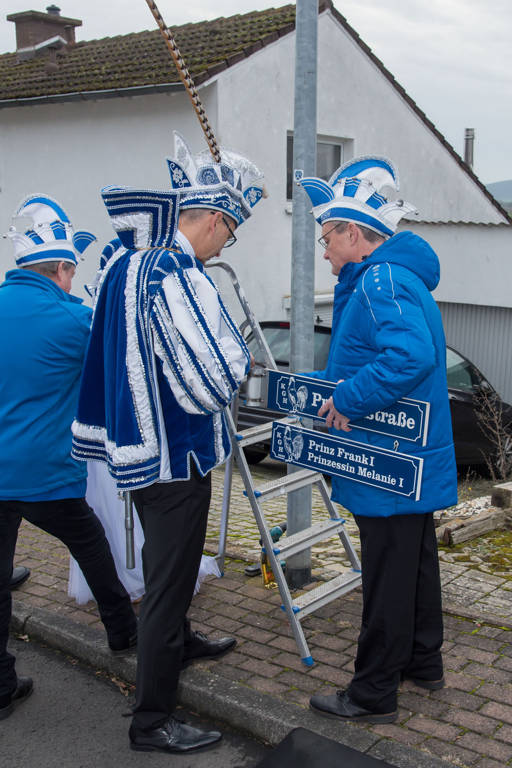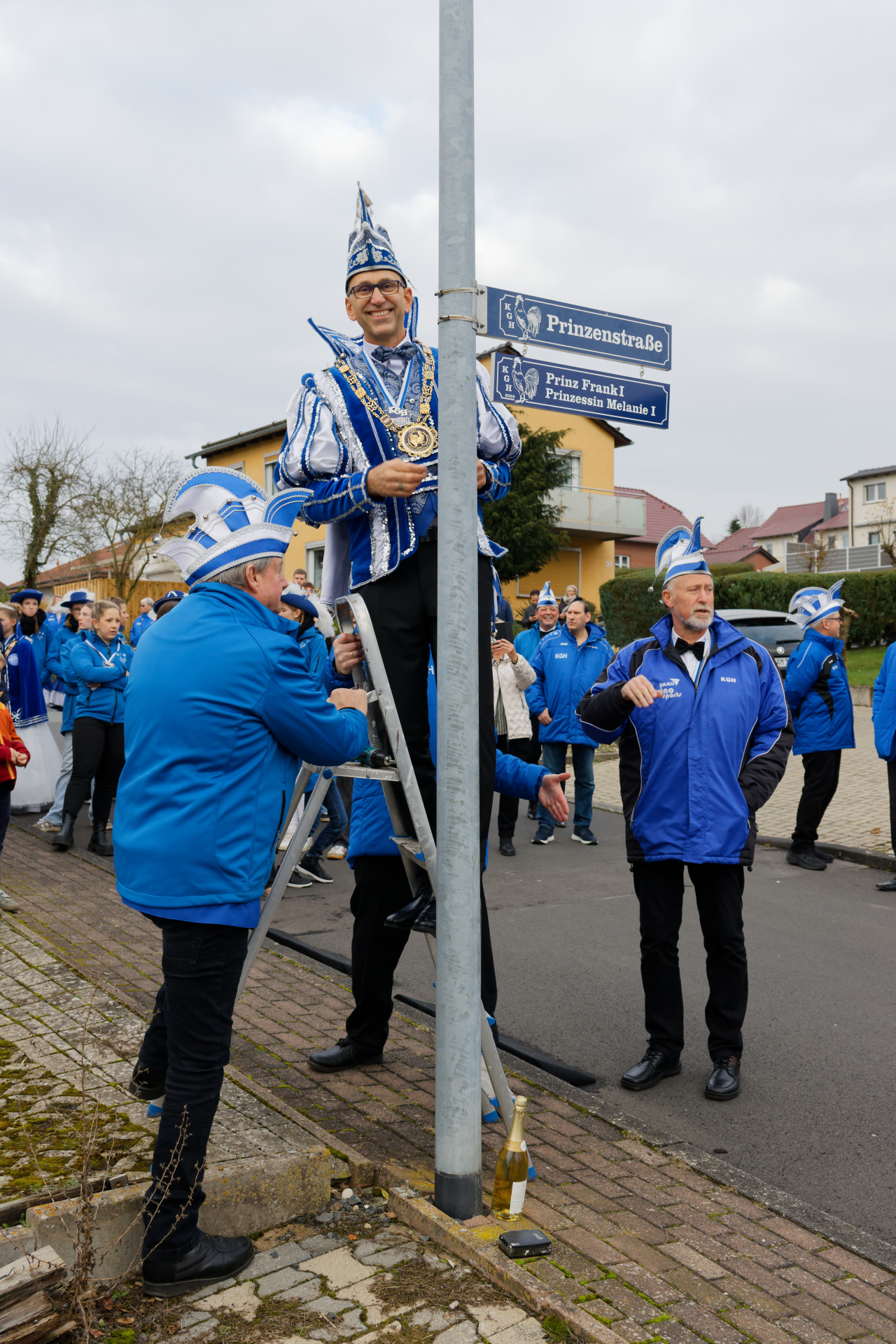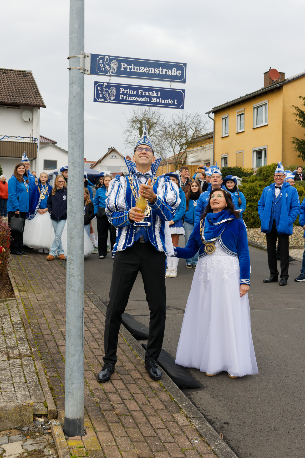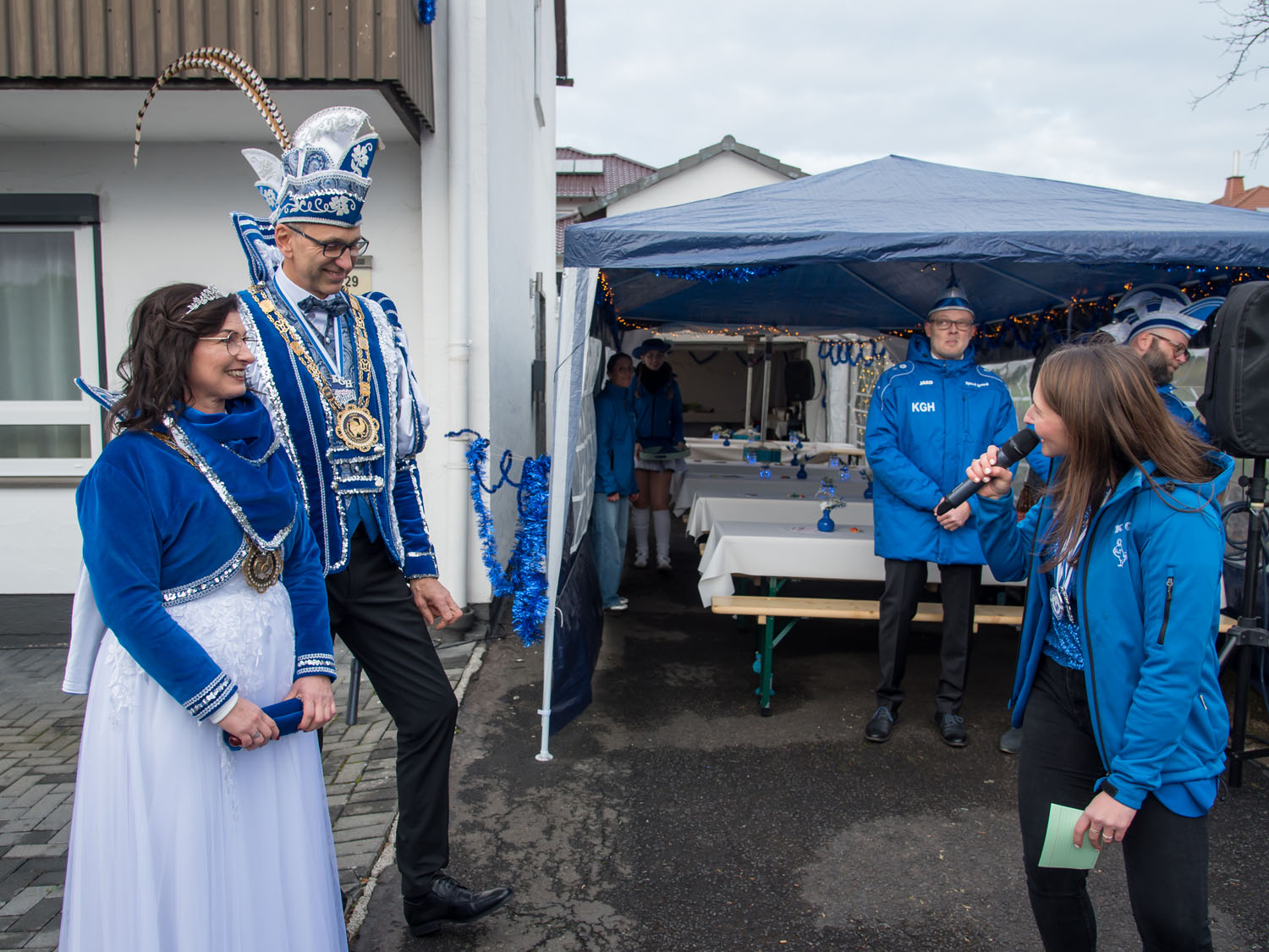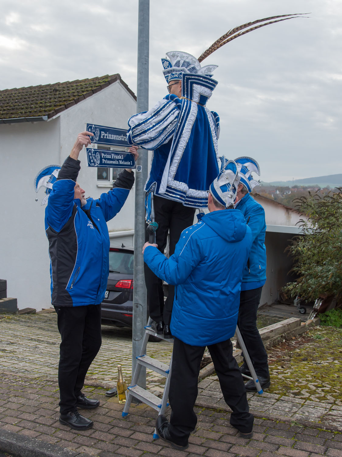 Nach ein paar sehr emotionalen Worten von Celine (GVT und Tochter des PP) und auch vom Prinzenpaar selbst wurde das Prinzenstraßenschild aufgehängt und das gemütliche Zusammensein begann. Es wurde gegessen und getrunken, geschnuddelt und gelacht.