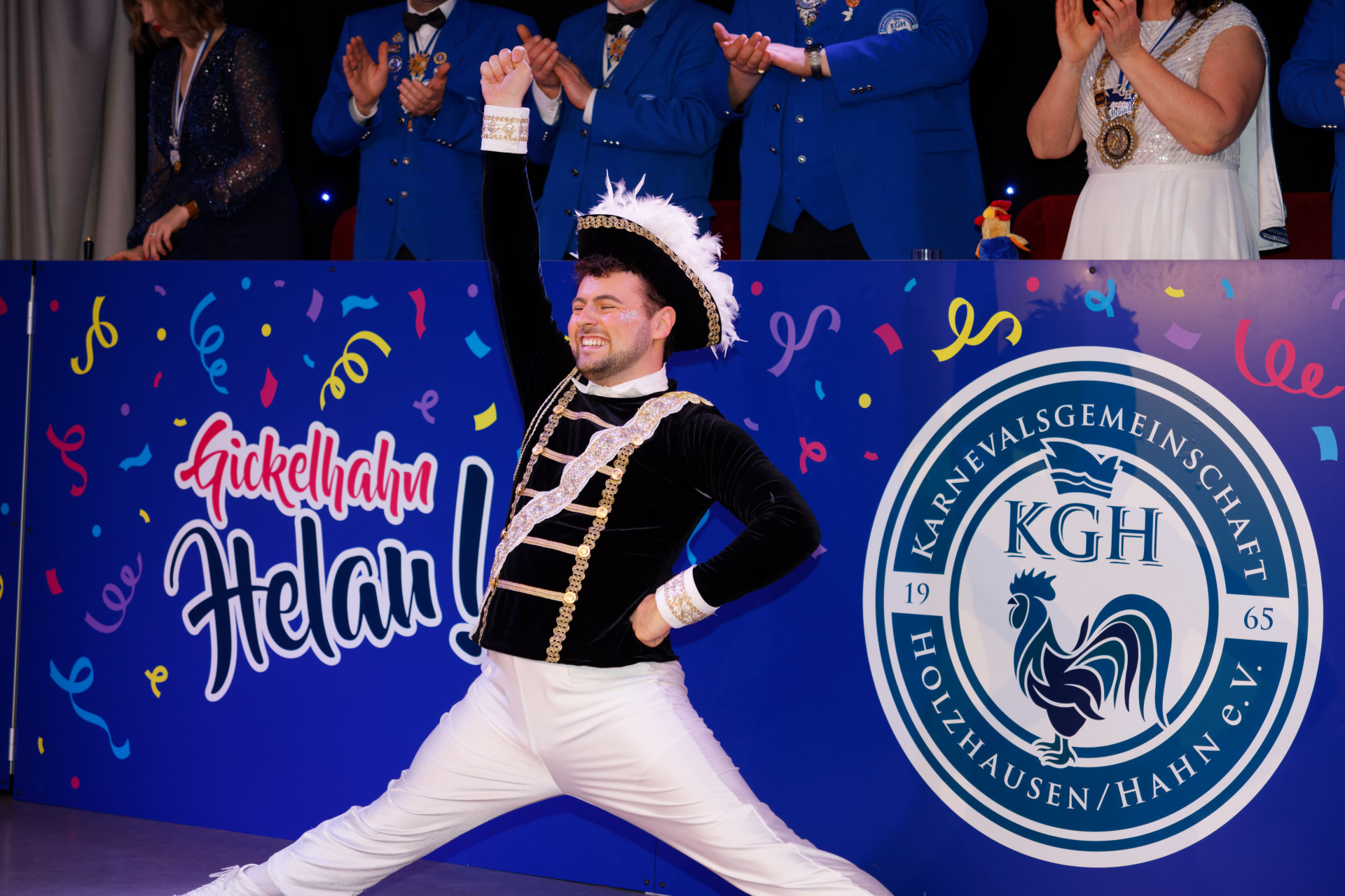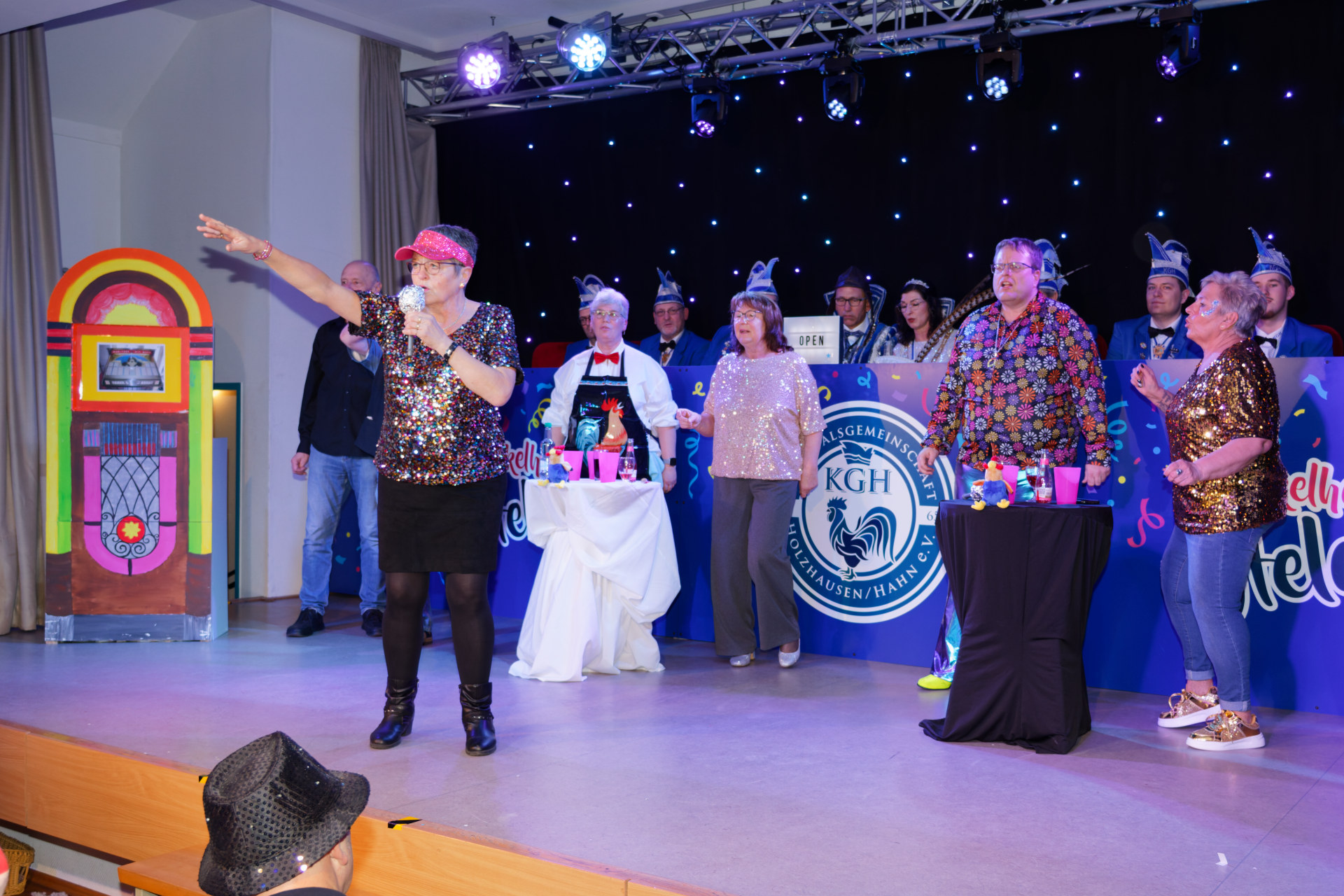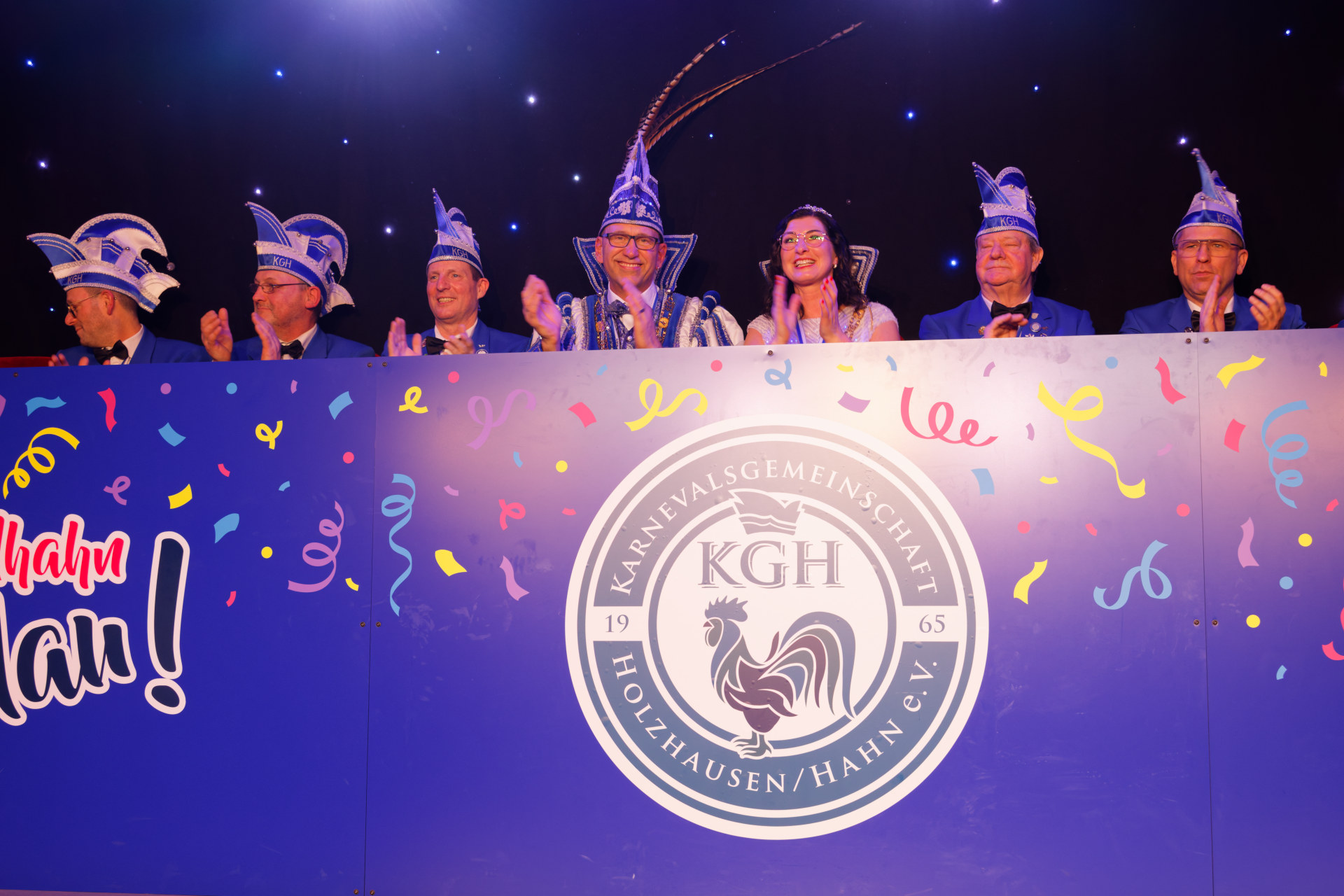 61. Karneval am Hahn „Helau again – zusammen jeck, gemeinsam stark!“Pünktlich um 20:11 Uhr eröffnet Karin Freitag unsere Sitzungspräsidentin den 61. Karneval am Hahn.
